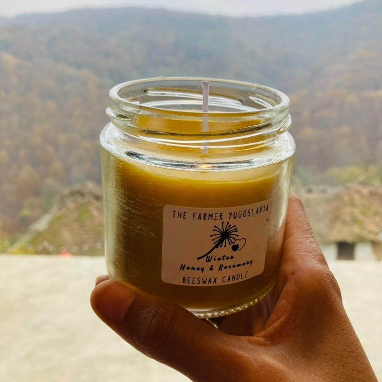 We’re planning to bring our favourite Bosnian and Serbian products to you — soaps, honey, rakija, and more. For now, we have our own handmade candle, made from pure beeswax from our local beekeepers in Bosnia — no chemicals, no dyes, just natural goodness and the beautiful smell of honey.